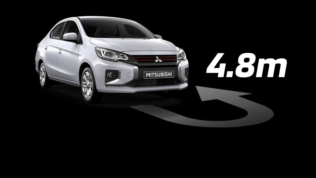 Việc xoay trở xe trong đô thị trở nên dễ dàng hơn rất nhiều đối với Attrage nhờ vào bán kính quay vòng chỉ 4,8m.