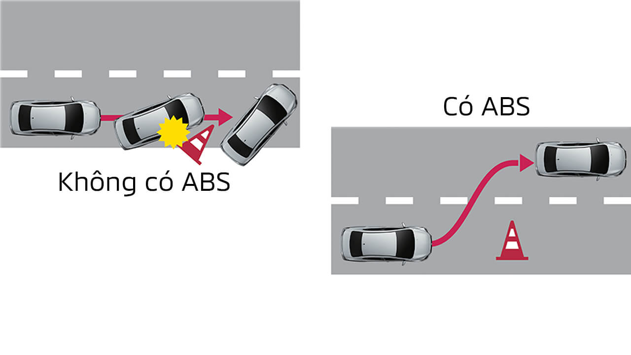 Hệ thống phanh ABS giúp chống hiện tượng bó cứng phanh duy trì khả năng điều khiển xe khi phanh gấp.
