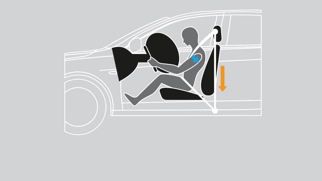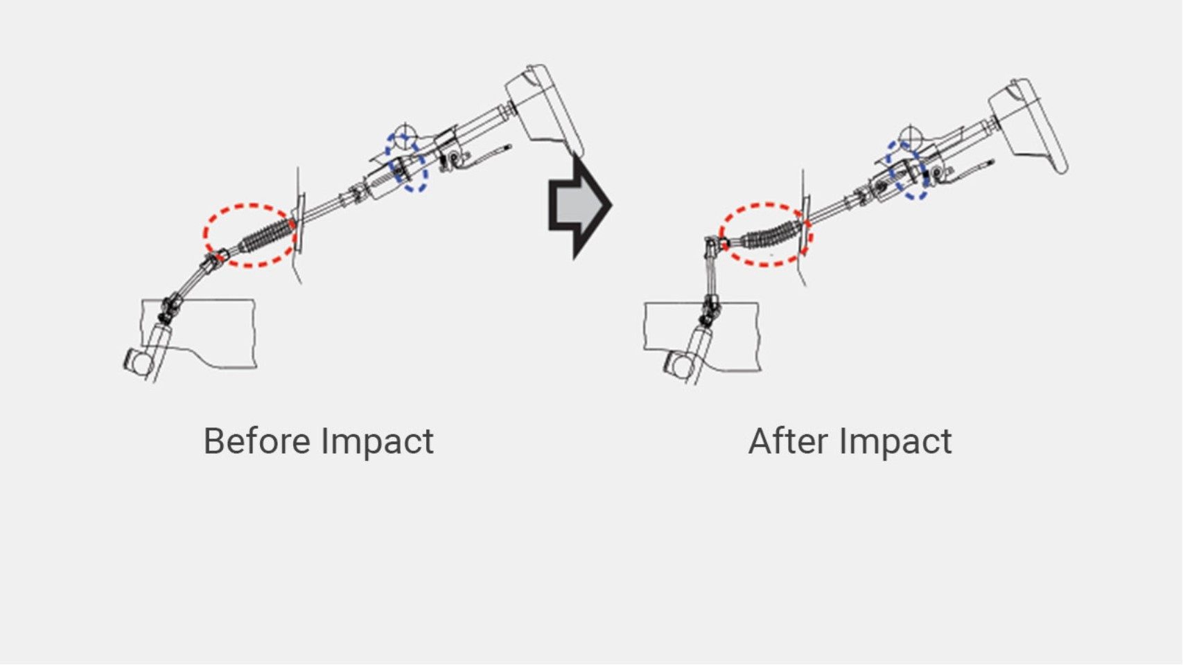 Khi xảy ra các va chạm trực diện, cột lái và bàn đạp phanh sẽ tự đổ nhằm bảo vệ tối đa phần đầu và chân cho người lái.