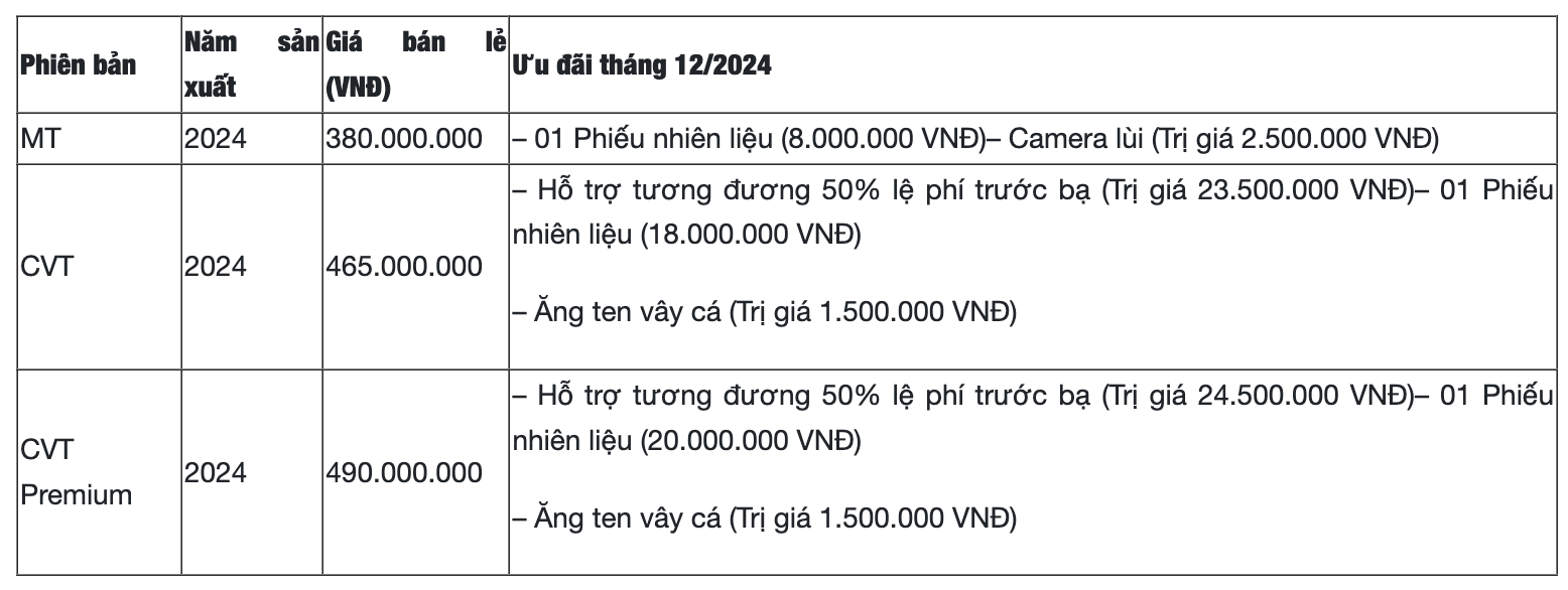 | KÍCH THƯỚC | MT | CVT | CVT Premium |